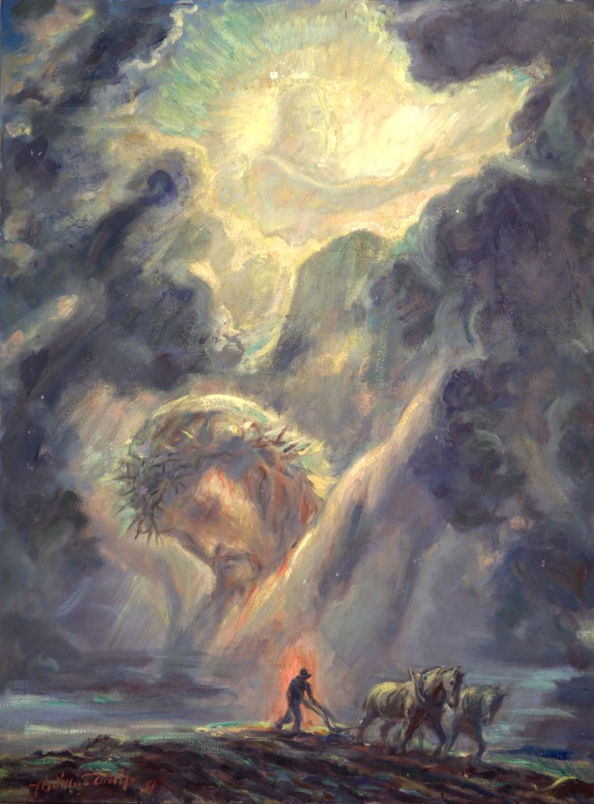 All Power (oil on canvas) Painted in 1951 by H. Willard Ortlip while teaching at Houghton College in New York State.
